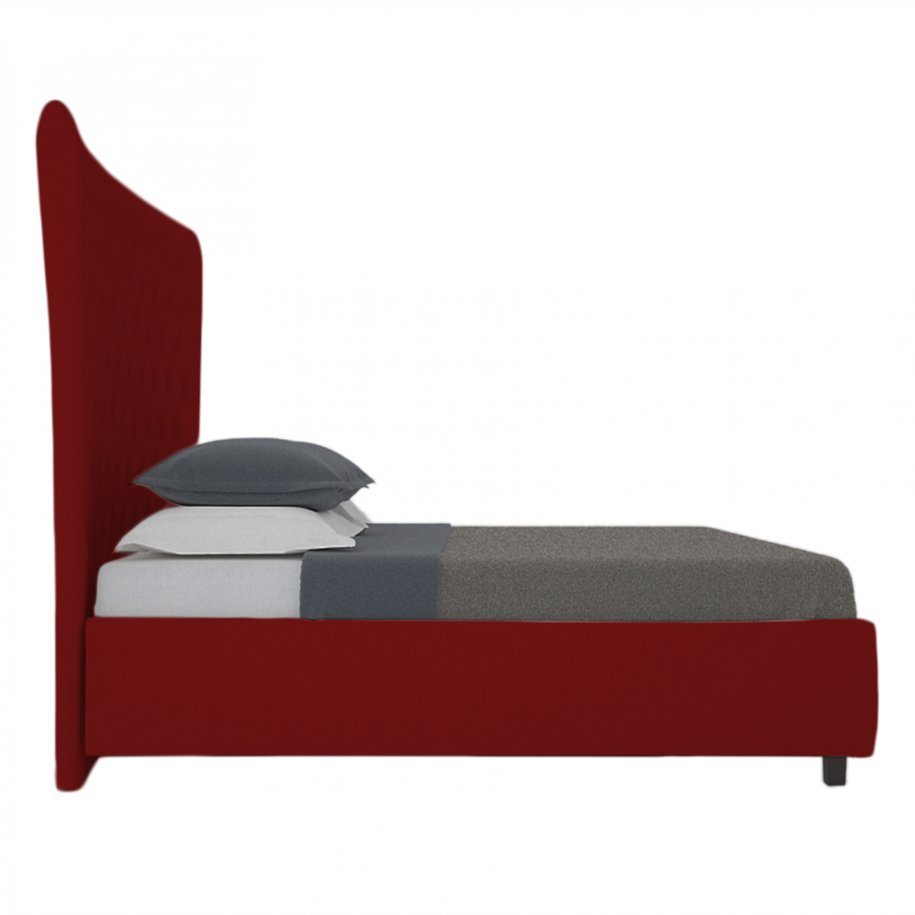 Великолепная двуспальная кровать QuickSand красного цвета изготовлена в стиле современного ар-деко. Каркас кровати изготовлен из МДФ, ножки выполнены из натурального дерева, что добавляет образу представительности и сдержанной роскоши. Высокое фигурное изголовье, обитое велюром, изящество линий и форм, изысканный дизайн и эффектный цвет делают эту модель неотразимой. Она смотрится одновременно уютно и элегантно, создавая в вашей спальне умиротворяющую атмосферу тишины и покоя. Размер спального места: 200*200 см.